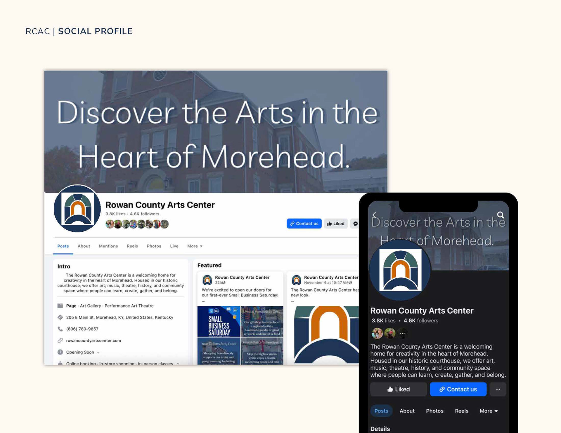 Rowan County Arts Center, the home for arts, theater and creativity in Morehead, KY, was in need of a fresh look after many years of feeling outdated. RCAC approached Design Leisurely with a desire to update their logo while honoring their home in the historic court house and their partnerships in the community.